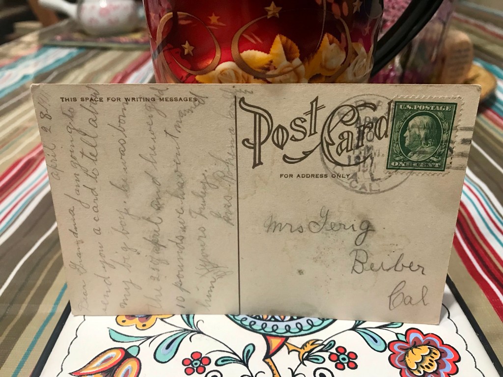 I feared not being able to find any information on the recipient of this postcard — the last card in the series initially gifted to me ten years ago. A last name (and a married one, at that), a town, and state. A quick search revealed that there was no shortage of Gerig’s in Beiber, California. It wasn’t a lot to go on. But there was a silver lining: for the first time, I could tell the story of the sender.
