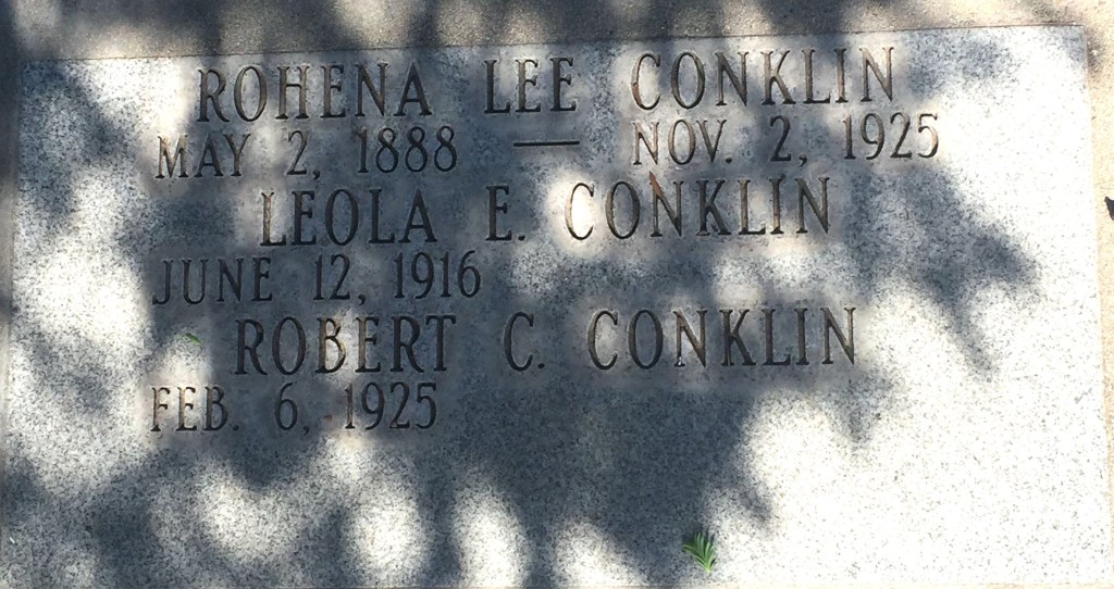 Grave marker for Rohena Lee Conklin. Source: findagrave.com.